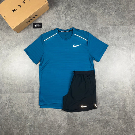 Nike Miler T-Shirt Pacific Moss & Black Flex Stride Shorts Set