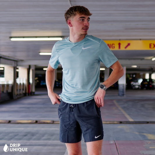 Nike Miler T-Shirt Pacific Moss & Pacific Moss Challenger Shorts Set
