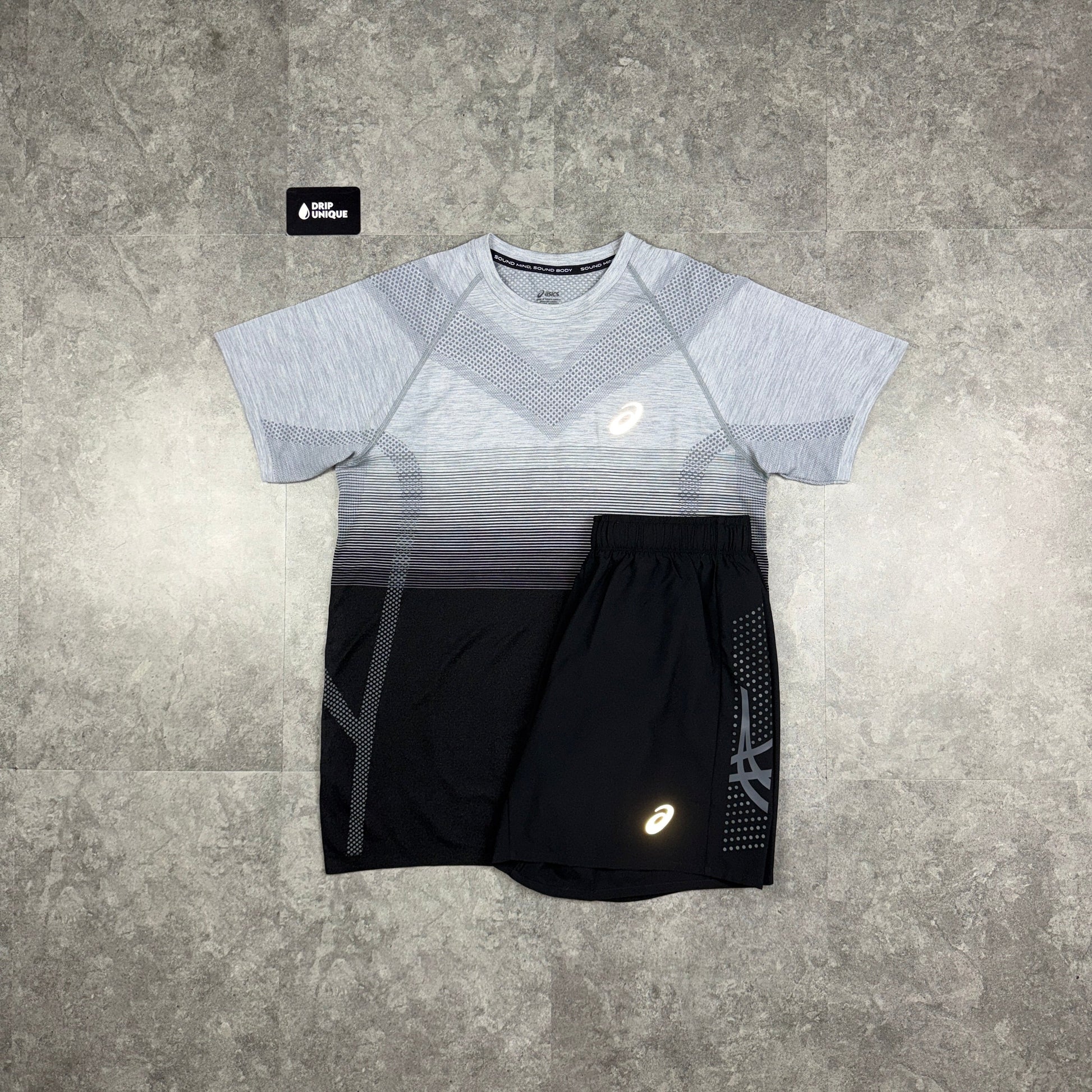 Asics Seamless Performance T-Shirt Black / Grey & Black Icon Shorts Set