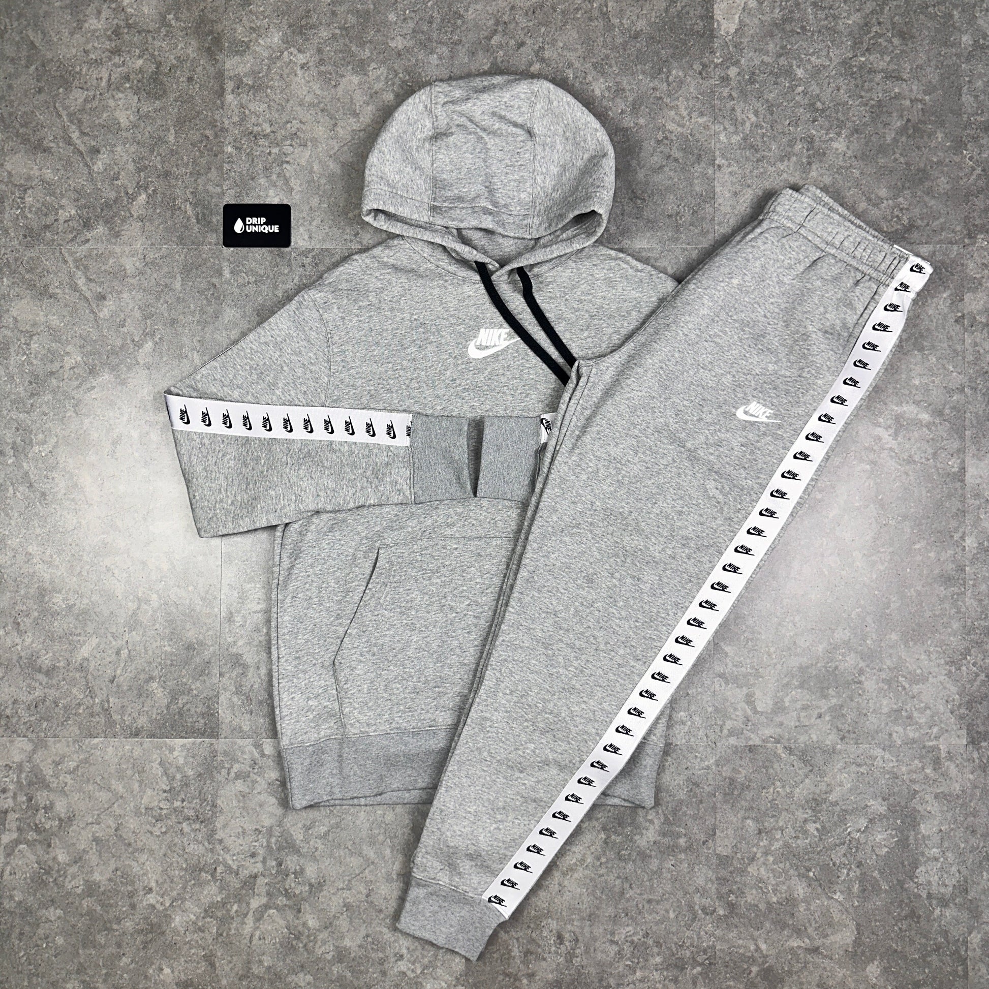 Whether hitting the gym, or chilling at home, the Nike Air Repeat Logo Set in Black has you covered. This Nike Set features a comfortable, warm fit with its fleece lining, adjustable hood and large pockets, as well as the repeat Nike Logo, making it the go to choice for the colder months. This Nike Set is paired with the Nike Fleece Repeat Logo Pants which provide a slim, comfortable fit with an elasticated waistband, perfect for any task!