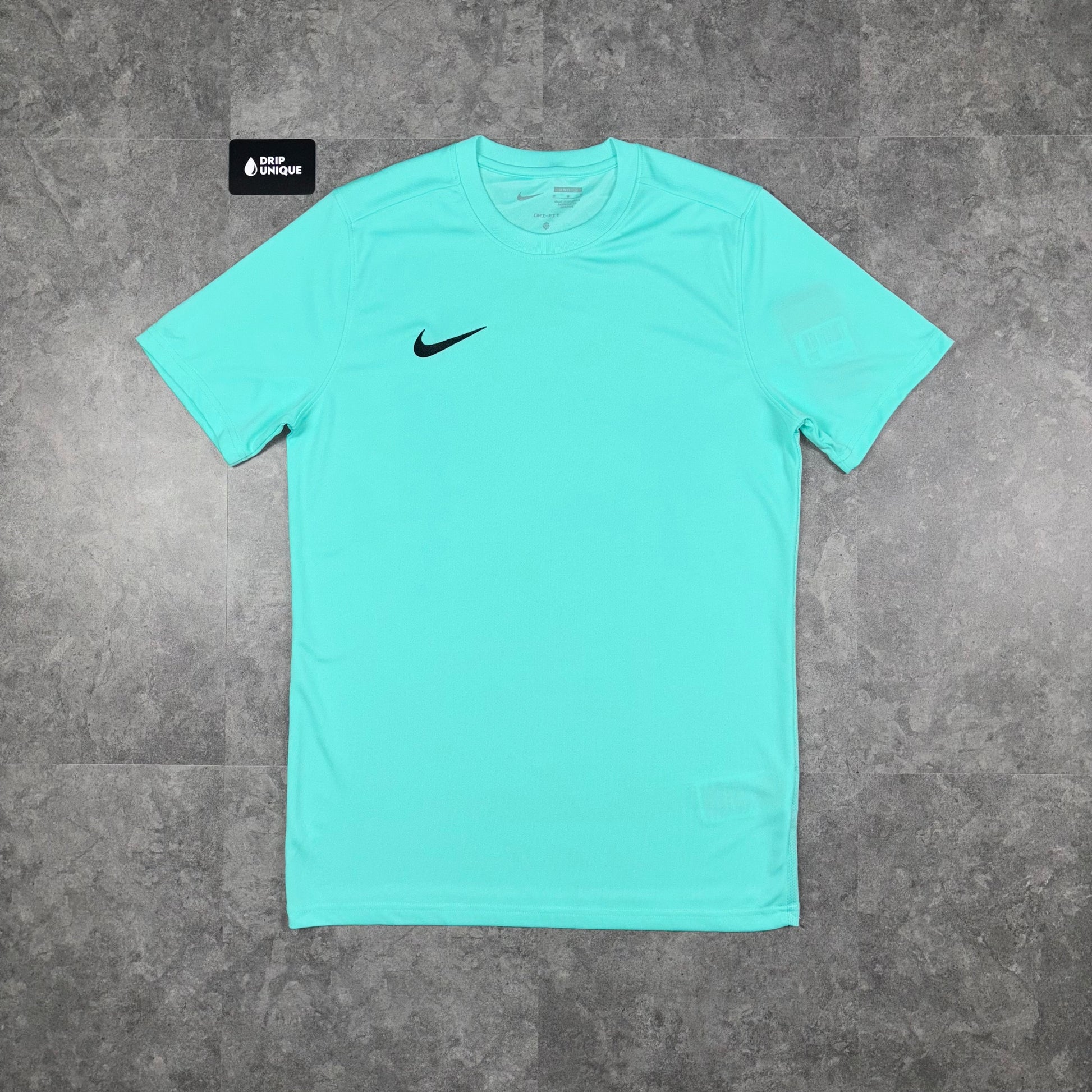 Introducing the popular Nike Dri-Fit T-Shirt in a Turquoise Blue Colourway. This Dri Fit T Shirt features a breathable, lightweight and slim fit design and uses Dri Fit tech to help wick away sweat, keeping your dry for longer!