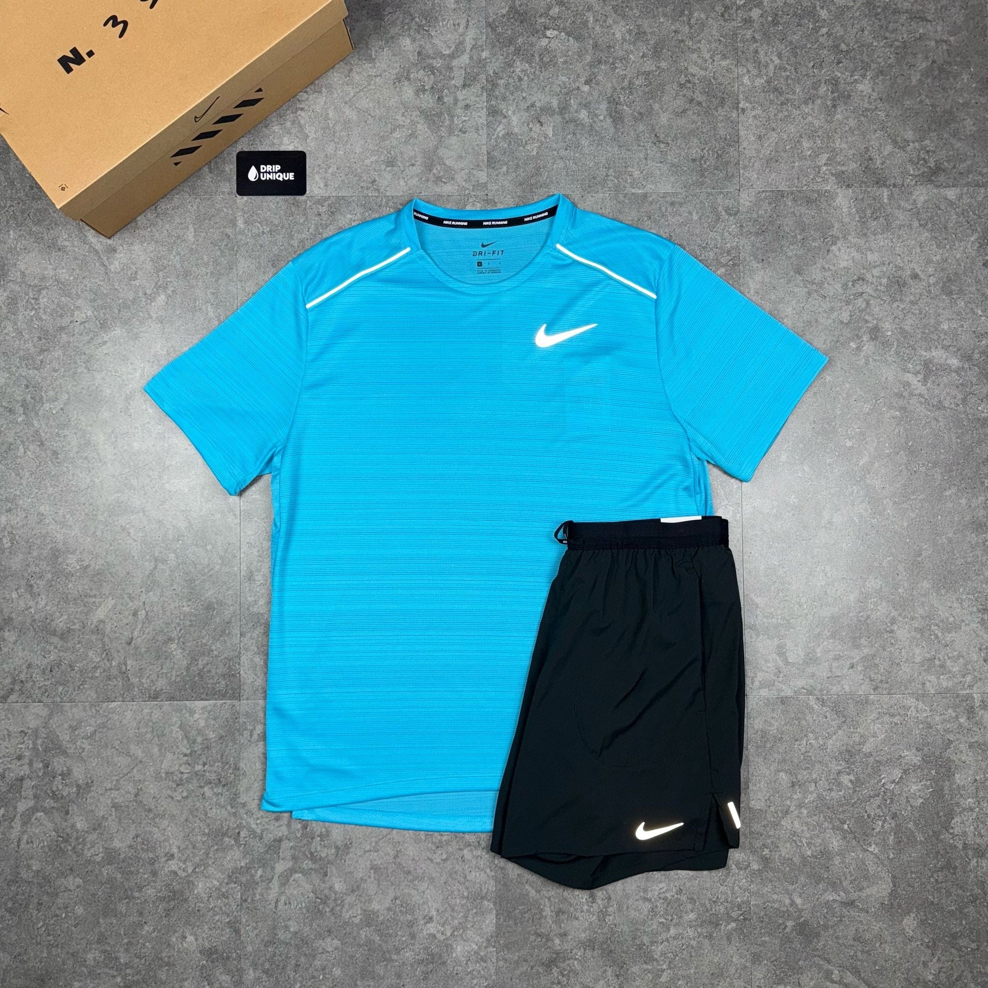 Nike Miler T-Shirt Chlorine Blue & Black Flex Stride Shorts Set