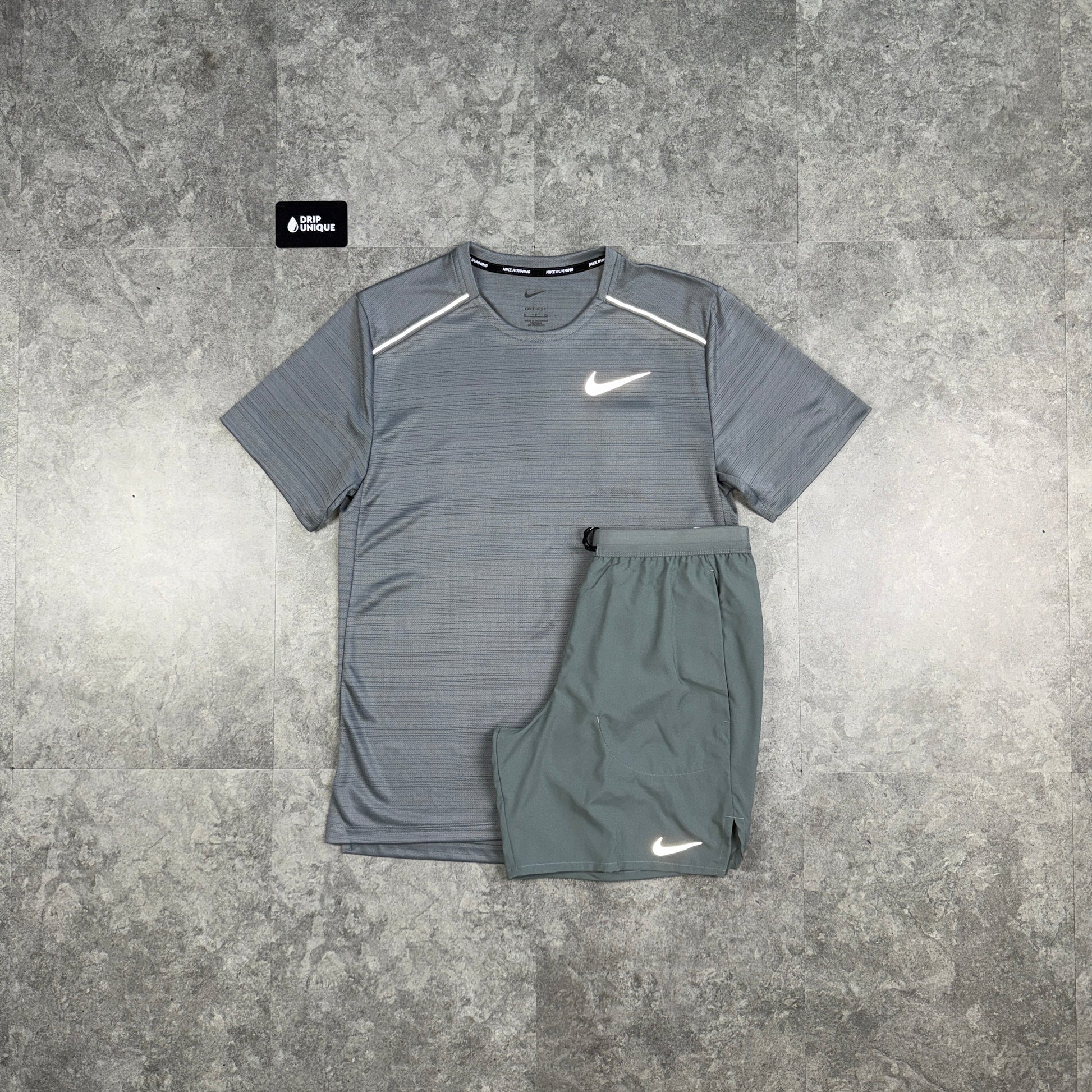 Nike Miler T-Shirt Grey & Grey Flex Stride Shorts Set