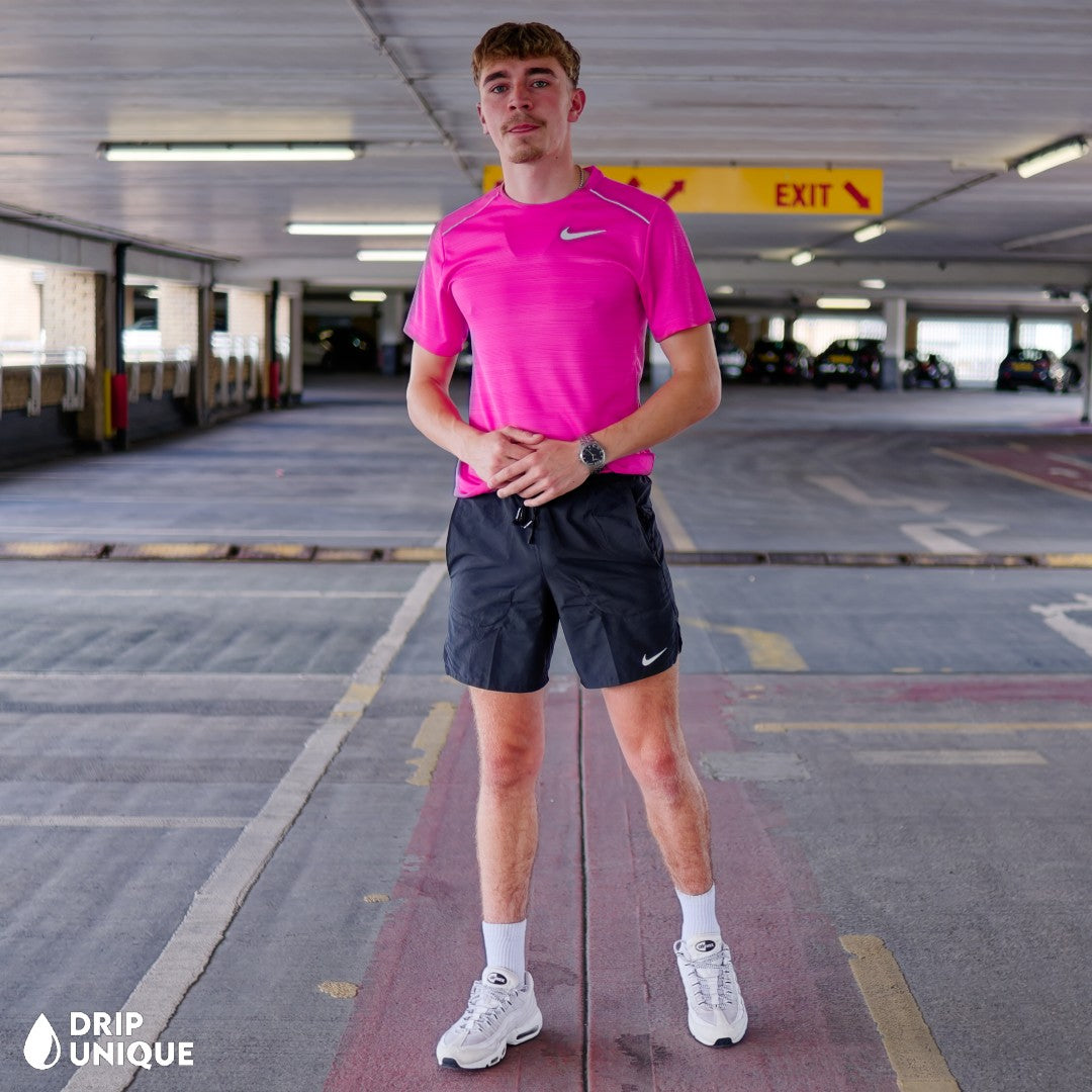 Our bestselling Miler Set of all time, the bestselling Nike Miler T-Shirt Set in a Hot Pink colourway is must have. Featuring Dri Fit Technology, which provides breathability and comfort by wicking away sweat, this Nike Set is the perfect addition to any wardrobe. The Nike Miler 1.0 keeps you comfortable, dry and looking fresh all day while the bestselling Nike Flex Stride shorts in a Black Colourway to complete the look!
