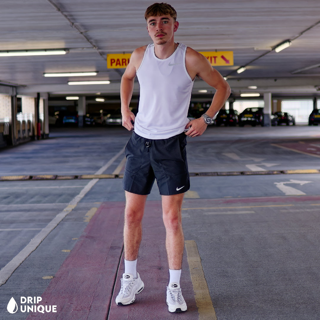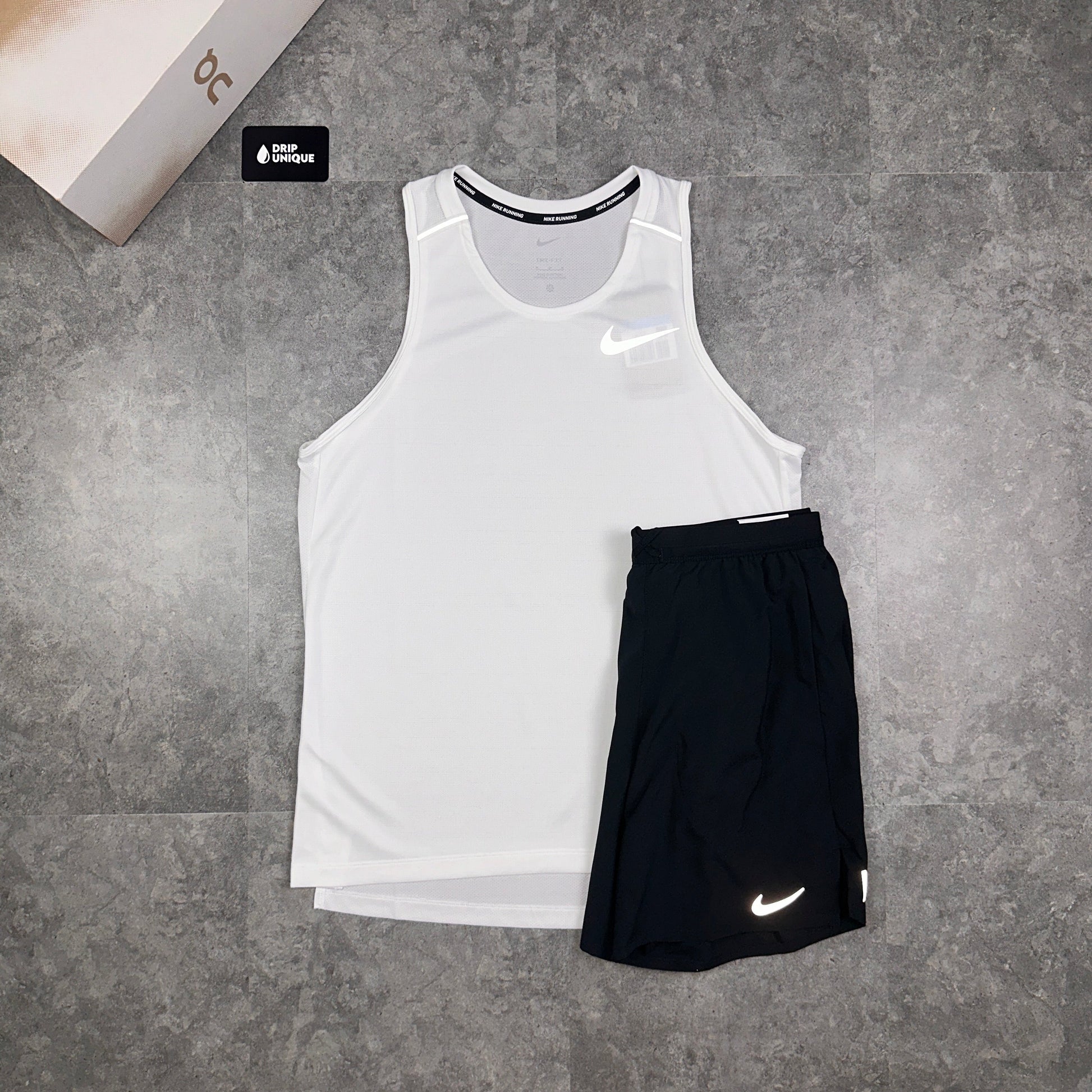 Last summers bestsellers are back with the Nike Miler Vest Set in a Ice White colourway. Featuring Dri Fit Technology, which provides breathability and comfort by wicking away sweat, this Nike Set is the perfect addition to any wardrobe. The Nike Miler Vest keeps you comfortable, dry and looking fresh all day while the Black Nike Flex Stride Shorts provide a stylish relaxed fit, completing the look!