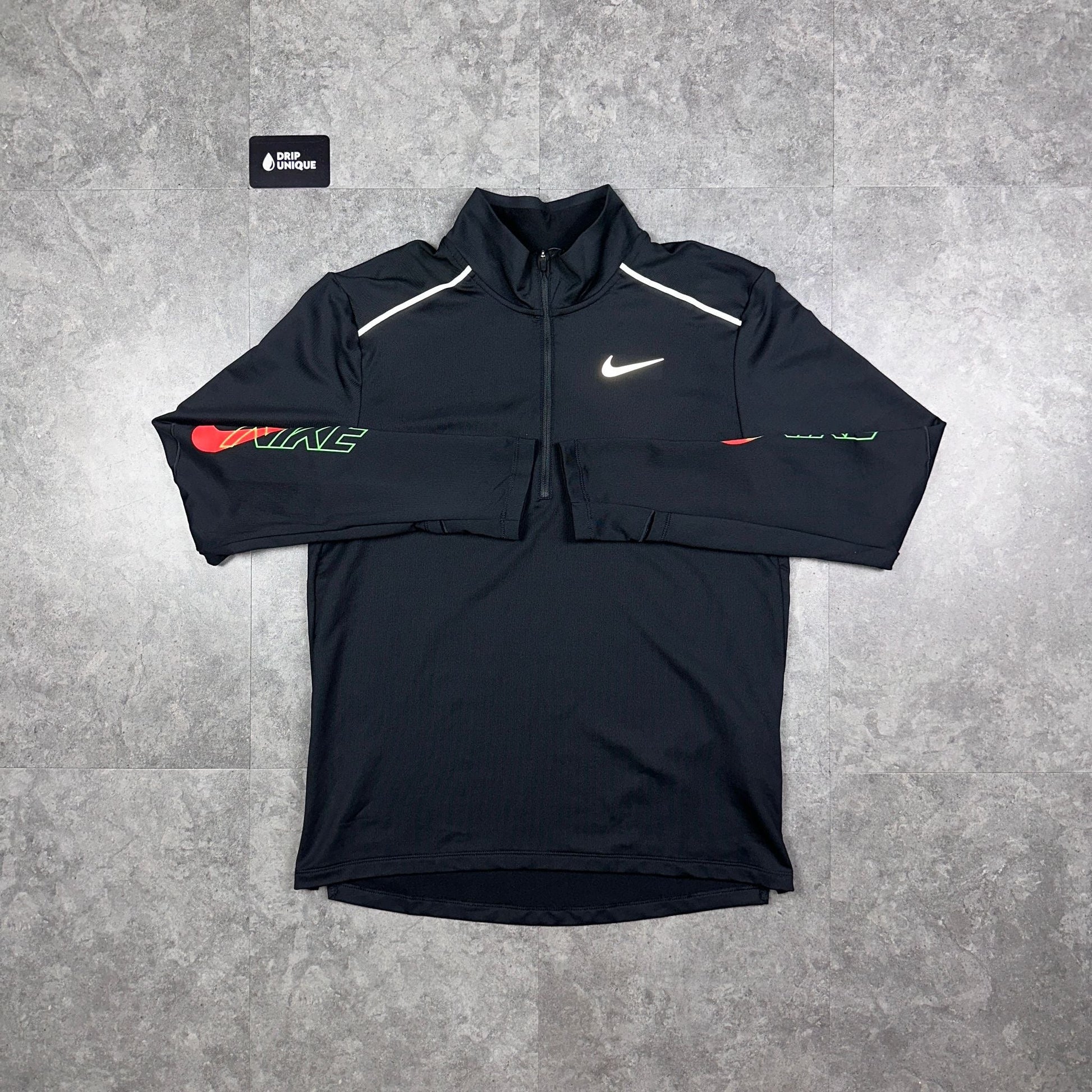 Introducing the Black Nike NK Element 1/4 Zip Top. A must have for any wardrobe, this Nike Quarter Zip features a lightweight, comfortable and slim fit as well as reflective details, and thumb loops for added comfort. This Nike Quarter Zip also utilises Dri Fit technology to wick away sweat, keeping you feeling and performing at your best.