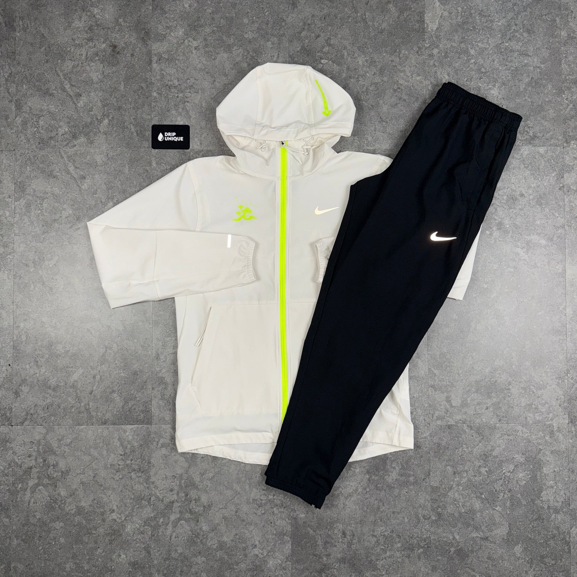Nike Repel “Just Do It” Windrunner Jacket White & Black Nike Challenger Pants Set