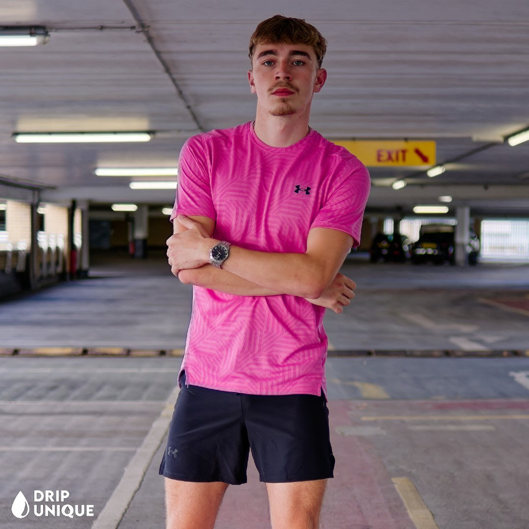 Level up your workout with the Under Armour Geo Tessa Vent T-Shirt in a Pink Colourway. One of our bestselling Under Armour T Shirts, this top features a lightweight and comfortable fit as well as reflective details, and also utilises Under Armour's Advanced HeatGear Technology that wicks away sweat, which helps you keep cool and dry during intense workouts! Finished with the classic Under Armour branding.