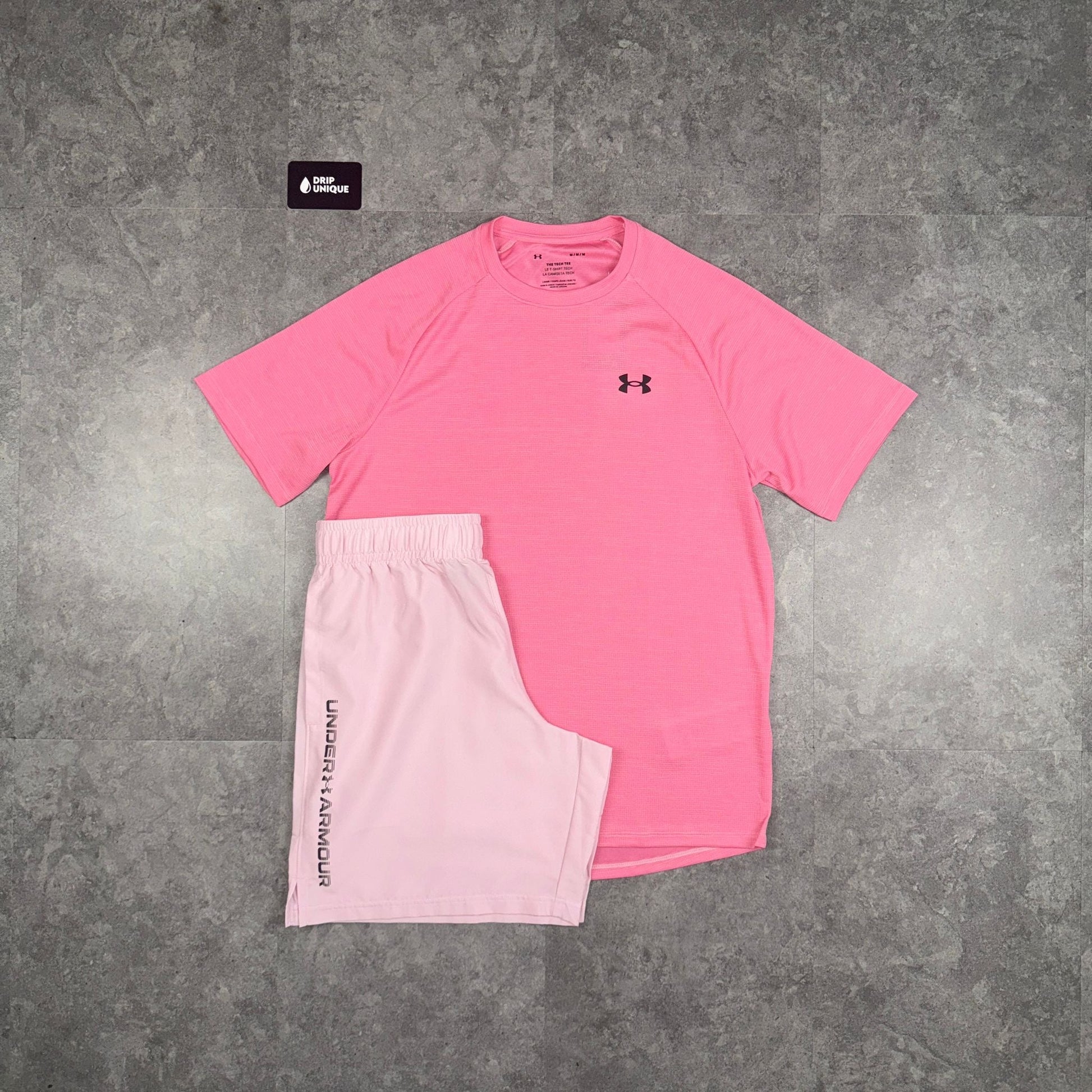 Under Armour Woven T-Shirt Pink & Pink Woven Shorts Set